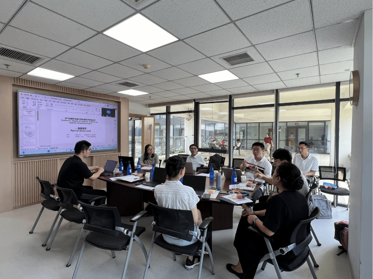 吴丹副教授受邀作报告,介绍了团队在大气污染防治和碳减排的关键措施成本评估方面的研究成果,并就方法与成果与来自哈佛大学、北京大学、清华大学、华南理工大学等科研单位的专家代表进行了充分交流。与会专家就如何基于可计算一般均衡模型系统评估治理行动的经济影响展开了热烈讨论,并探讨了模型运行所需的参数输入、成本评估方法的优化方向、成本评估与综合评估模型的衔接等。