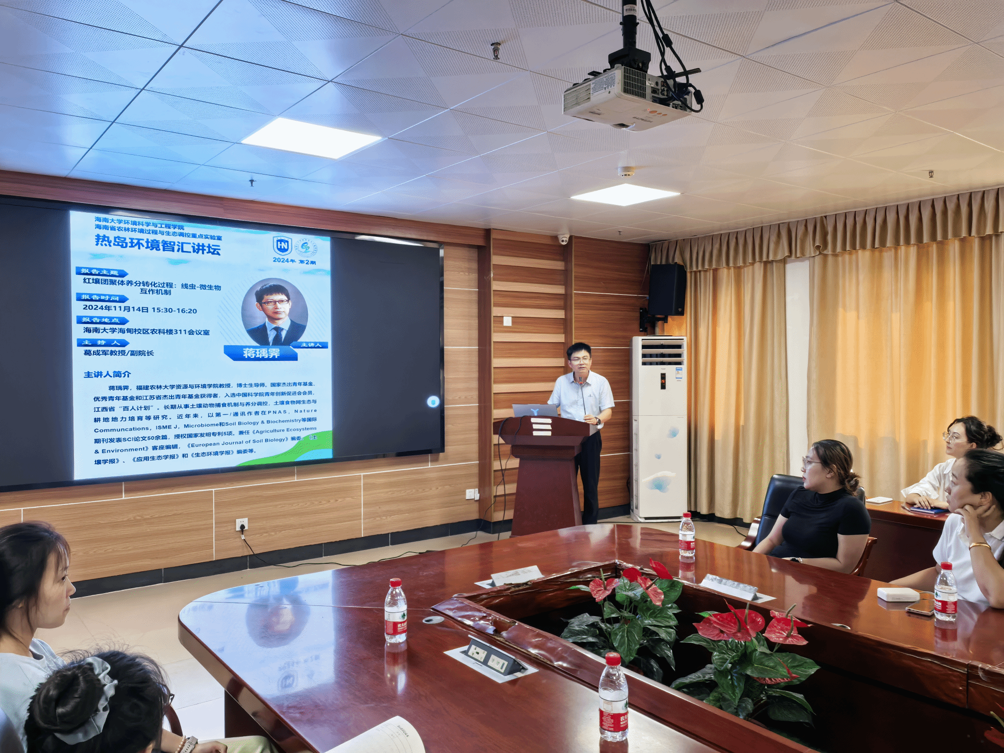2024年11月14日,由bevitor伟德与海南省农林环境过程与生态调控重点实验室联合主办,葛成军教授主持的“热岛环境智汇讲坛”(第三期)成功举办。本期讲坛特别邀请了两位环境科学领域的杰出学者——东北农业大学张颖教授与福建农林大学蒋瑀霁教授,就各自研究领域的前沿课题进行深度探讨与交流。公司杨春平、贾培宏、彭丽成、罗吉伟、杨兴、邓惠、张琳琳、郭晓宇、冯丹、孙宏飞、黄鹏等多位老师以及研究生参加了此次论坛。