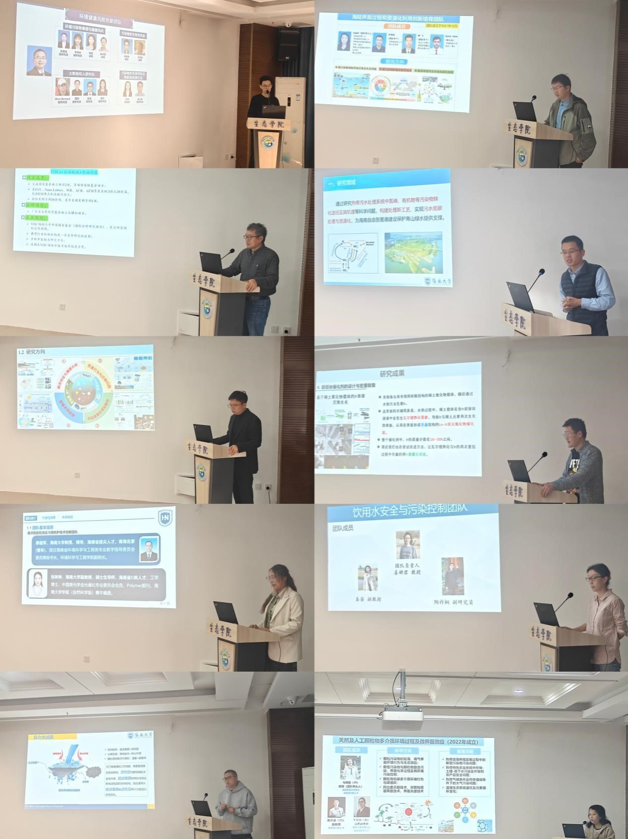 会议分为两个阶段进行。第一阶段于1月6日下午举行,会议由葛成军副经理主持。包括“环境与人类健康,公共卫生”、“石油化工污染控制”、“新污染物环境归趋与风险评估”、“海洋智能检测及污损防护技术”、“低碳能源与环境污染控制技术”、“海陆界面过程和资源化利用”、“热带污水低碳处理与资源化利用”、“自支撑电催化功能材料设计与应用”、“饮用水安全与污染控制”、“天然及人工颗粒物多介质迁移与微界面效应”在内的10个创新团队进行了精彩的汇报,展示了他们在各自领域的最新研究成果和技术突破。