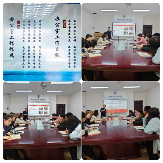 培训中,王旭书记结合自身工作经历、具体工作案例,紧扣公司与公司发展的新形势新要求,针对当前行政教辅工作实际,对全体人员提出了明确要求。他强调,全体人员要切实树立规矩、责任、担当、危机四种意识,持续改进工作作风,树立“马上就办”“办就办好”的工作理念。围绕“两办一中心”工作,王书记就如何加强内部协作、提升沟通协调能力、增强履职尽责能力等进行了具体业务培训与指导。同时,他就严肃上班纪律提出了明确要求,并对新闻审核发布、学术报告服务保障、会议室管理等几项工作流程的优化改进进行了布置。最后,他勉励全体人员:“端正态度,努力奋斗,在创建世界一流环境学科的征途中,争当工作顺利、收入提升、家庭幸福、生活和美的人生赢家。”
