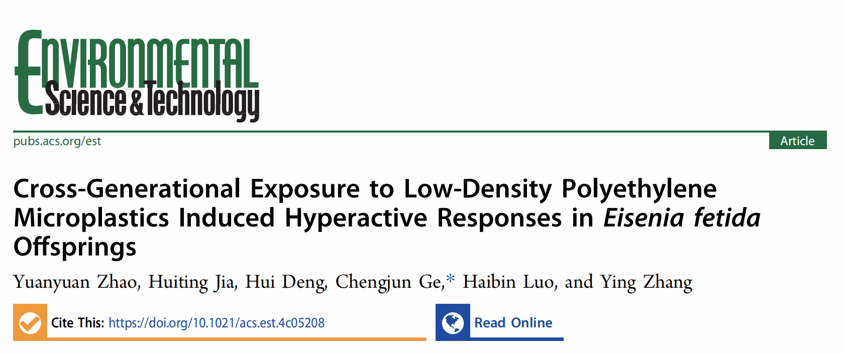 2024年11月17日,环境领域权威期刊《Environmental Science & Technology》在线发表了bevitor伟德葛成军教授团队的副封面文章“Cross-Generational Exposure to Low-Density Polyethylene Microplastics Induced Hyperactive Responses in Eisenia fetida Offsprings”。BEVITOR伟德博士后赵媛媛为该文唯一第一作者,葛成军教授为独立通讯作者。