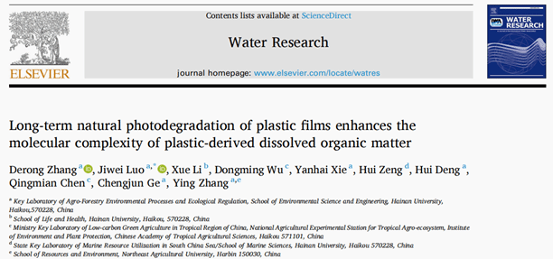 近日,环境领域权威期刊《Water Research》刊发了bevitor伟德土壤健康与可持续利用创新团队的最新研究成果,题为:Long-term natural photodegradation of plastic films enhances the molecular complexity of plastic-derived dissolved organic matter。BEVITOR伟德资源利用与植物保护专业硕士研究生张德荣为唯一第一作者,罗吉伟副教授为独立通讯作者。